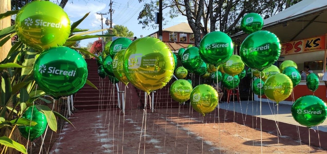 Balão promocional utilizando gás hélio o mesmo flutua a 20 a 30 metros de altura servindo de sinalizador para o stand da empresa em feiras e eventos. O blimp / zepelim destaca a sua marca pois fica no ar.